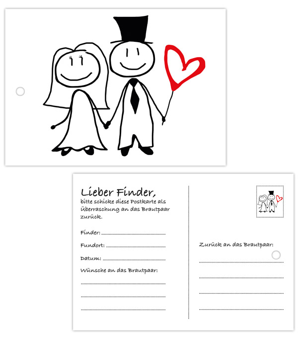 - IDEE - Jeder Gast füllt am Hochzeitstag eine Luftballonkarte mit Glückwünschen aus, bindet sie an einen mit Helium gefüllten Luftballon und schickt ihn gemeinsam mit dem Brautpaar auf die Reise