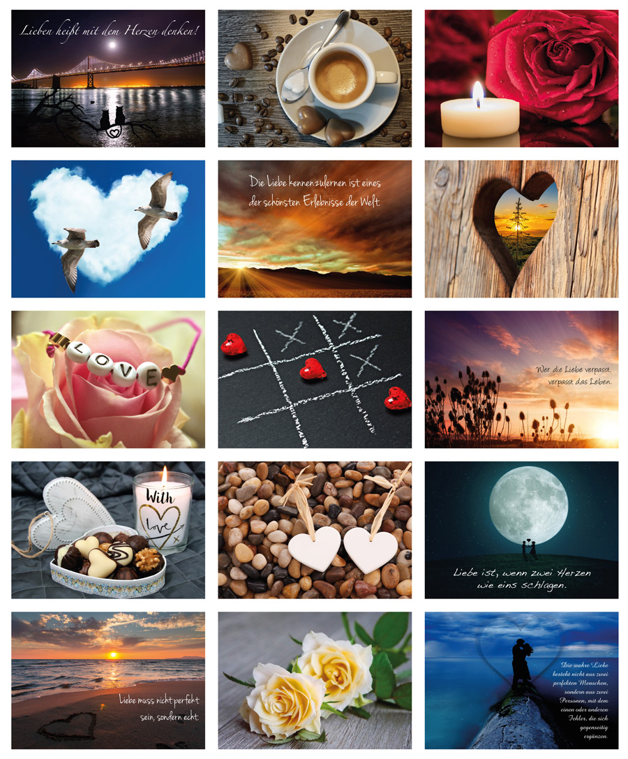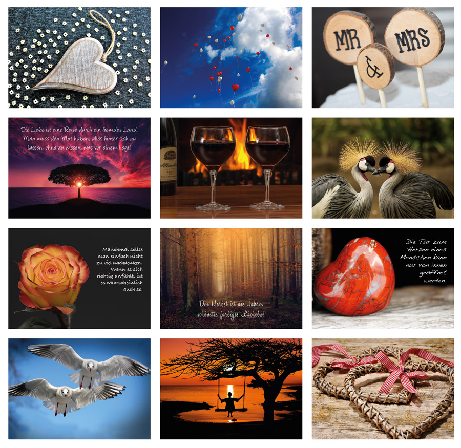 Die Karten können Sie einzeln nach Ihrem persönlichen Geschmack kaufen. Inzwischen gibt es aber auch zahlreiche Angebote mit Sets genau für diesen Zweck. Durch so ein Set sparen Sie in der Vorbereitung viel Zeit und auch einiges an Geld. Auch wir haben viel Arbeit in ein Set investiert, welches wir auf Amazon verkaufen. Dieses zeichnet sich durch folgende Punkte aus: